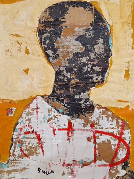 Armand Boua, is an Ivorian artist based in Abidjan, whose textured paintings explore themes of social struggle and human resilience. His work focuses on marginalised communities, particularly the street children of Abidjan, shedding light on their lives amidst political and social turmoil. Using layers of acrylic and collage, Boua applies and strips back paint to create haunting, abstract forms that reflect both the fragility and vitality of his subjects. With his raw, expressive technique, Boua captures the tension between beauty and hardship, inviting viewers to confront the realities often overlooked in everyday life.