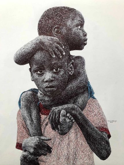 Oluwasanmi Adesiyan, is a self-taught Nigerian artist whose figurative works explore the joys, struggles, and memories of growing up in Nigeria. Using a distinctive scribble technique with ballpoint pen, alongside other media like acrylic and crayon, Adesiyan creates intricate portraits that evoke nostalgia and emotional depth. Inspired by childhood experiences and the influence of his artist uncle, his art captures the essence of everyday life, offering viewers a reflective connection to their own stories. Through delicate lines and textures, Adesiyan’s works resonate with themes of resilience, simplicity, and the beauty of formative years.