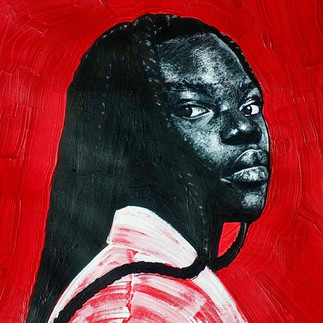 Sabina Silver, a Ghanaian artist based in Amsterdam, explores personal identity and collective memory through her deeply symbolic work. Her art reflects experiences of migration, fear, and Blackness, interwoven with narratives of girlhood and womanhood. Using a bold palette of red, black, and white, Silver creates a dialogue between history and the present, addressing themes of loss, resilience, and transformation.